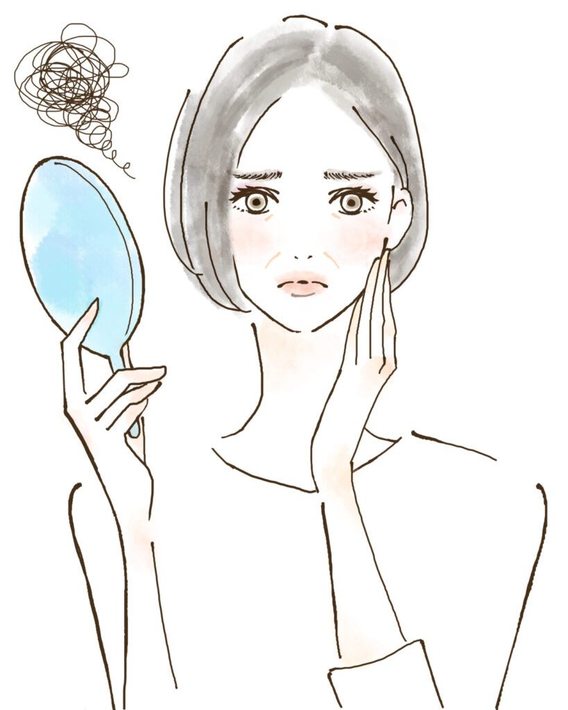 頬の筋肉がこわばると、皮膚が折れ込みやすくなり、ほうれい線が目立ちやすくなります。