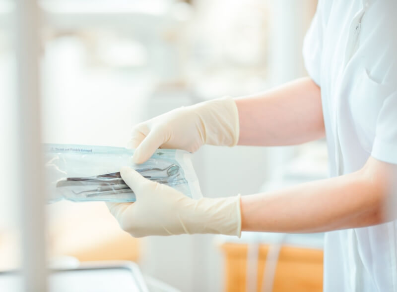 患者様毎にオートクレープで滅菌した機材や器具などを使用し、コップやエプロンなどは使い捨て(ディスポーザブル)のものを採用するなど、衛生面にも気を配っております。